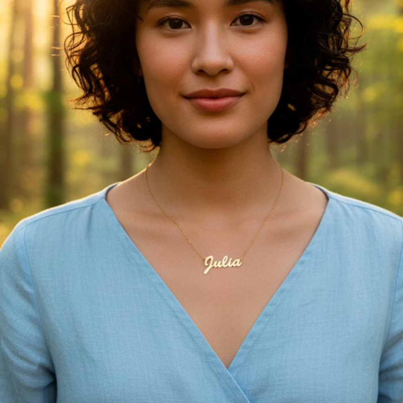 Personalized gold name necklace. Choose the name size and wear your unique jewelry.