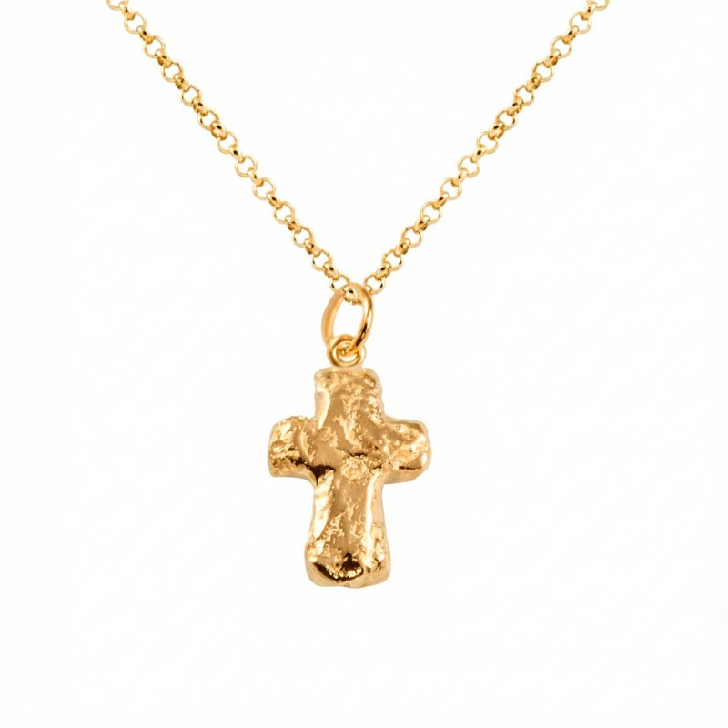 Discover the contemporary elegance of our Asymmetric Halo Cross in Gold, crafted with a minimalist and modern style.