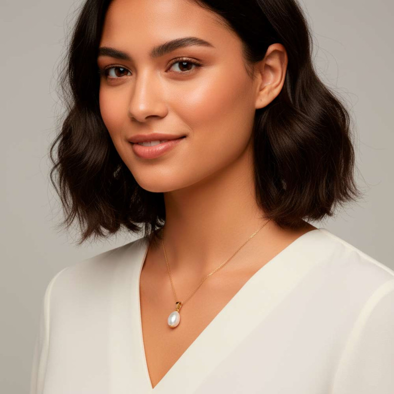 Gold pendant with a smooth pearl. Each pearl is unique, ensuring a one-of-a-kind piece. Available with or without a gold chain