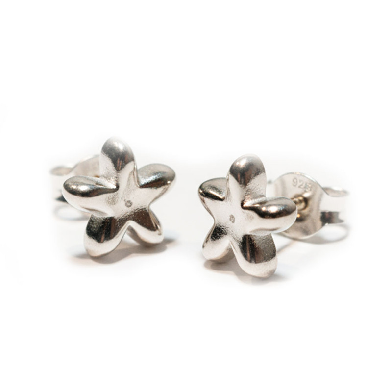 Silver jasmine-shaped earrings, 10 mm in diameter. Handmade jewelry crafted in sterling silver.