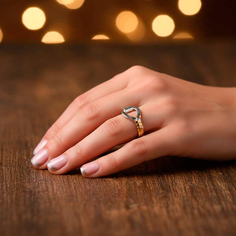 The Lazada Ring combines sterling silver with a central 18k gold strip, creating a minimalist and sophisticated design. The bow-shaped detail adds a distinctive and modern touch, perfect to wear alone or layered with other rings. Handcrafted for quality and meticulous finish in every detail.