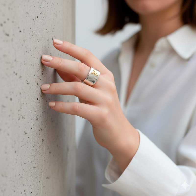Nuestros Anillos Cera Inicial en Oro están hechos a mano en nuestro taller de joyería, combinando una base de plata de ley con una inicial personalizada en oro de primera ley. Son anillos únicos y personales, ideales para regalar o llevar una letra significativa siempre contigo. Disponibles en una amplia variedad de tallas para asegurar el ajuste perfecto. Especifica la inicial deseada en la casilla de personalización al hacer tu pedido. Consulta la foto de referencia con las tipografías disponibles para los fetiches y selecciona la elegida en la casilla correspondiente.