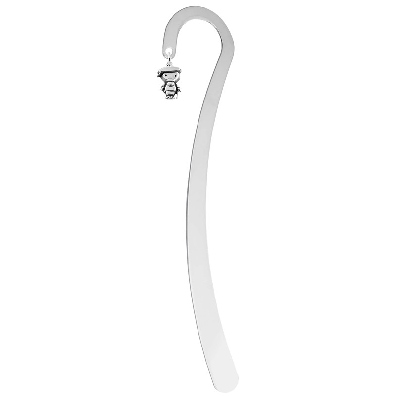 Este marcapáginas de plata incluye un charm decorativo a elegir entre diferentes diseños como abuelo, abuela, niña, niño, casa, corazón, entre otros. Puedes personalizarlo con un grabado adicional (nombre, fecha, frase corta, etc.).