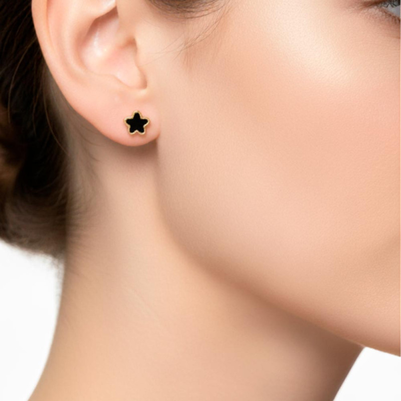 Pendientes de plata chapada en oro con forma de jazmín de 8 mm, rellenos con esmalte negro.